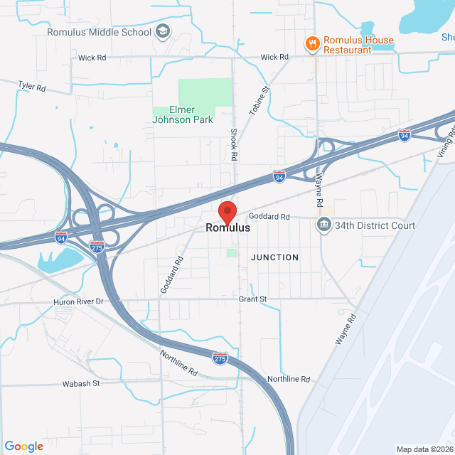 One mile East of the I-275 and I-94 interchange. Our office is 1/2 mile north of I-94 on Wayne Rd.
